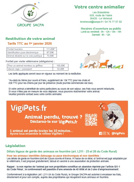 En cas de divagation d’un chien, nous les contactons afin que celui-ci soit récupéré.